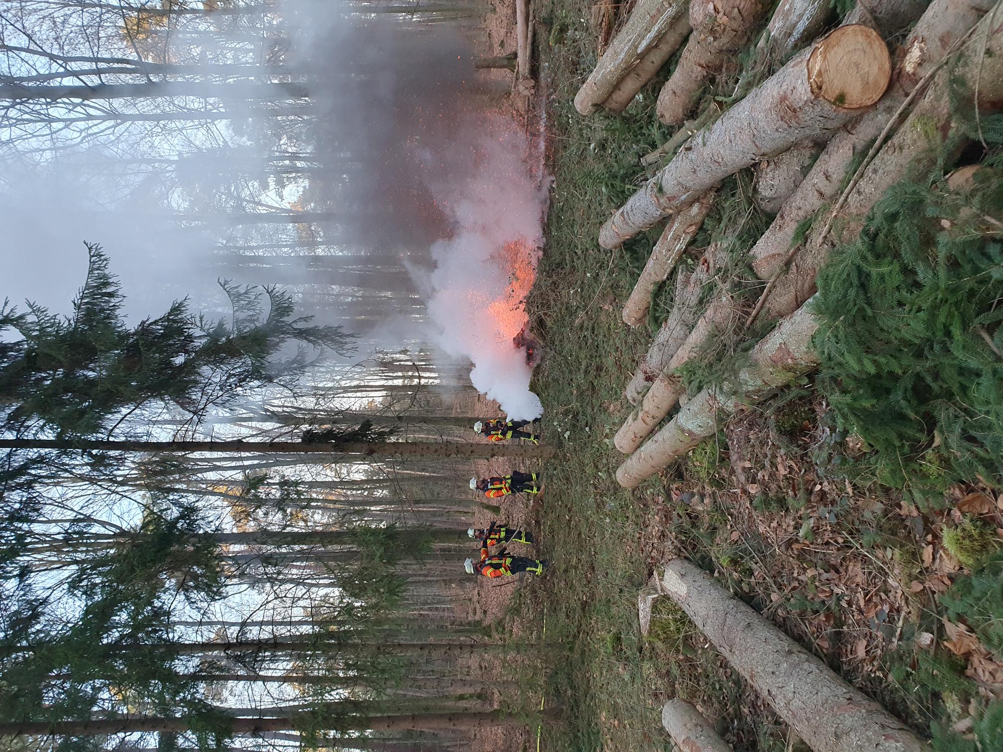 Großostheim. Am 27.12.2025 wurde die Feuerwehr Großostheim gegen 15:30 Uhr zu einer starken Rauchentwicklung im Unterwald zwischen dem Verkehrslandeplatz Aschaffenburg und der B 26 alarmiert. Autofahrer hatten zuvor auf der AB 8, die die beiden Bereiche miteinander verbindet, zwischen den Bäumen hängenden Rauch und Brandgeruch wahrgenommen. Die Feuerwehr Großostheim rückte vorsichtshalber mit einem für einen Waldbrand geeigneten Aufgebot bestehend aus einem Einsatzleitwagen (ELW 1) einem Löschfahrzeug (HLF 20/16) und zwei Tanklöschfahrzeugen (TLF 16/25 & TLF 20/40 SL) an, obwohl die vorgefundene Lage für die Einsatzkräfte schlussendlich wenig überraschend war.