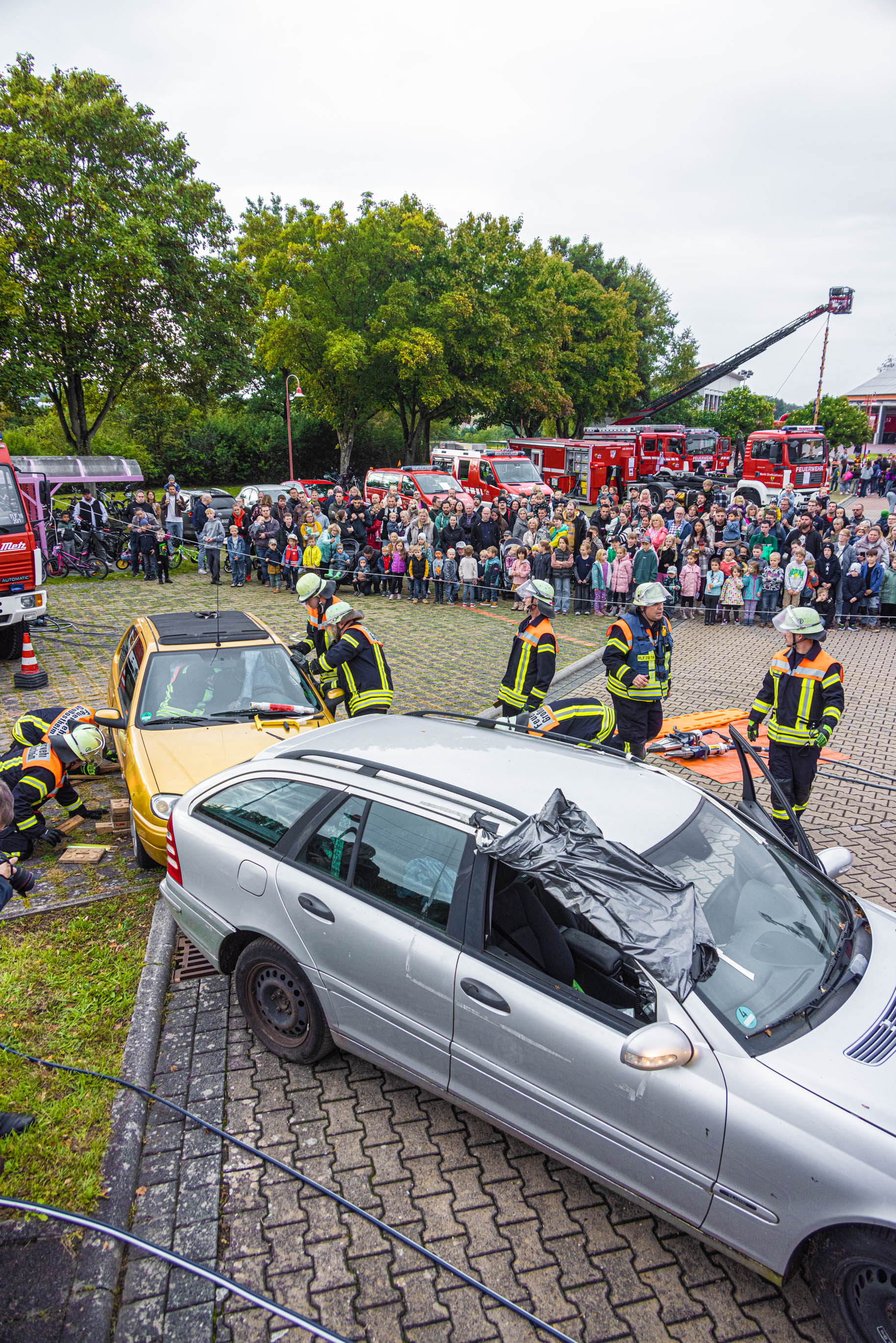 Am vergangenen Samstag, den 27.09.2025, beteiligte sich die Feuerwehr Großostheim an der bayernweiten Aktion "Lange Nacht der Feuerwehr". Bei diesem besonderen Tag der offenen Tür haben sich über 1.000 Besucher aus Großostheim und der Umgebung von 14 - 22 Uhr einen interessanten Einblick in das Feuerwehrwesen geholt. Insbesondere für die Kinder wurde ein aufregender Parkour mit zahlreichen spielerischen Stationen aufgebaut, nach dessen Bewältigung eine kleine Belohnung wartete. Der straff gebündelte Ablaufplan bot neben Führungen durch das Feuerwehrhaus auch Einsatzvorführungen aller drei Löschzüge und zu allen wesentlichen Themenbereichen der Feuerwehr, Auftritte der Jugendfeuerwehr, der Höhenrettungsgruppe (SRHT) und der Feuerwehrfrauen sowie Fettbrandexplosionen und Experimentalvorträge zum Thema "Brennen und Löschen".