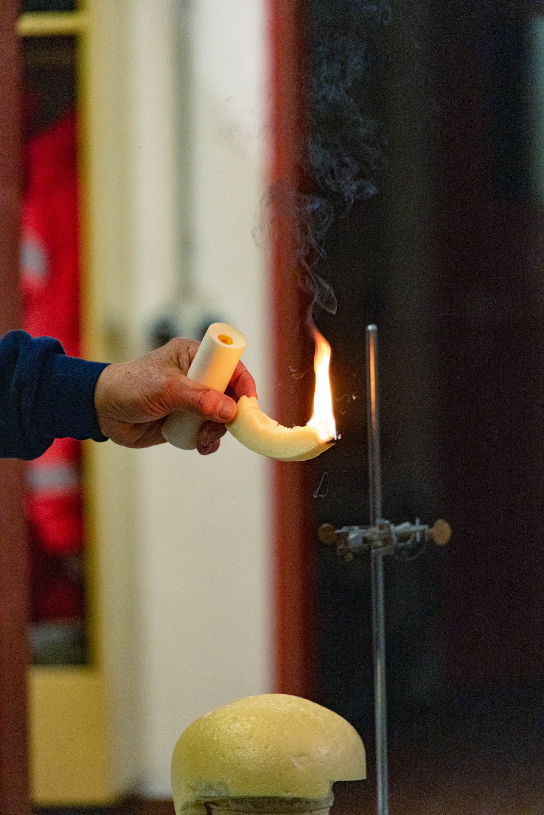 Bei weiteren Experimenten wurde auch die entstehenden Rauchgase bei Kunststoffbränden näher untersucht. Dieser stellt aufgrund der erstickenden, reizenden und giftigen Gase nicht bloß die wesentliche Todesursache bei Bränden dar, sondern kann auch noch brennbare Gase (Pyrolysegase) enthalten, die dann ab etwa 600 °C Raumtemperatur zu einem plötzlichen Flash Over (Rauchgasdurchzündung) führen können. Dabei breitet sich ein vermeintlich überschaubares Feuer in einem Raum schlagartig überall aus, Laien verwechseln dieses Phänomen häufig mit einer Explosion.