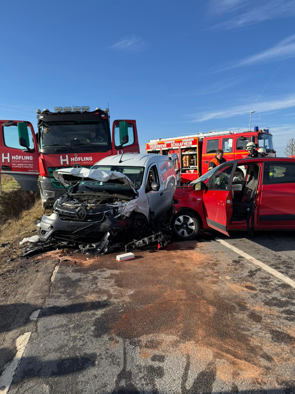 Großostheim. Am 16.01.2026 kam es gegen 11:30 Uhr auf der Staatstraße 3115 zwischen Großostheim und Schaafheim an der Abzweigung zum Großostheimer Ortsteil Ringheim, direkt an der Landesgrenze zwischen Bayern und Hessen, zu einem Verkehrsunfall. Der Notruf 112 über Mobiltelefon ging an die hessische Leitstelle in Dieburg, die sofort die Freiwillige Feuerwehr Schaafheim gemeinsam mit dem Rettungsdienst alarmierte und den Notruf an die Integrierte Leitstelle Bayer. Untermain weitergab. Von dort wurde die Freiwillige Feuerwehr Großostheim ebenfalls zur Unfallstelle alarmiert.