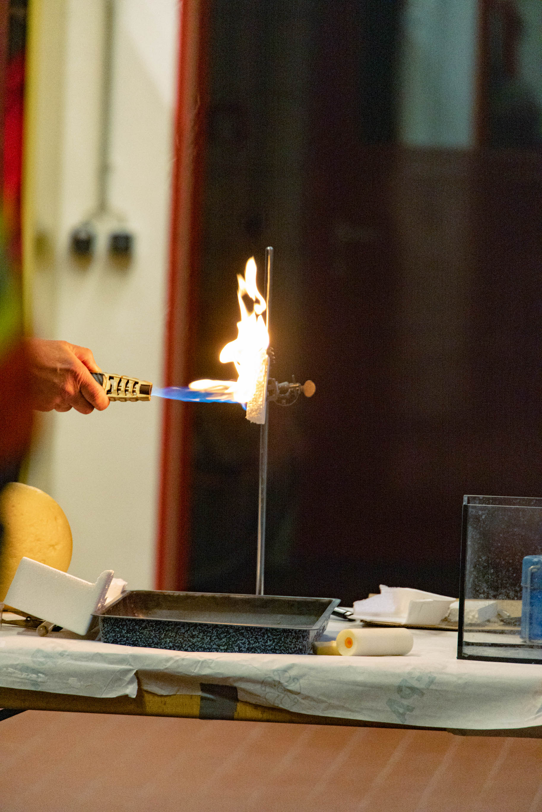 Bei weiteren Experimenten wurde auch die entstehenden Rauchgase bei Kunststoffbränden näher untersucht. Dieser stellt aufgrund der erstickenden, reizenden und giftigen Gase nicht bloß die wesentliche Todesursache bei Bränden dar, sondern kann auch noch brennbare Gase (Pyrolysegase) enthalten, die dann ab etwa 600 °C Raumtemperatur zu einem plötzlichen Flash Over (Rauchgasdurchzündung) führen können. Dabei breitet sich ein vermeintlich überschaubares Feuer in einem Raum schlagartig überall aus, Laien verwechseln dieses Phänomen häufig mit einer Explosion.