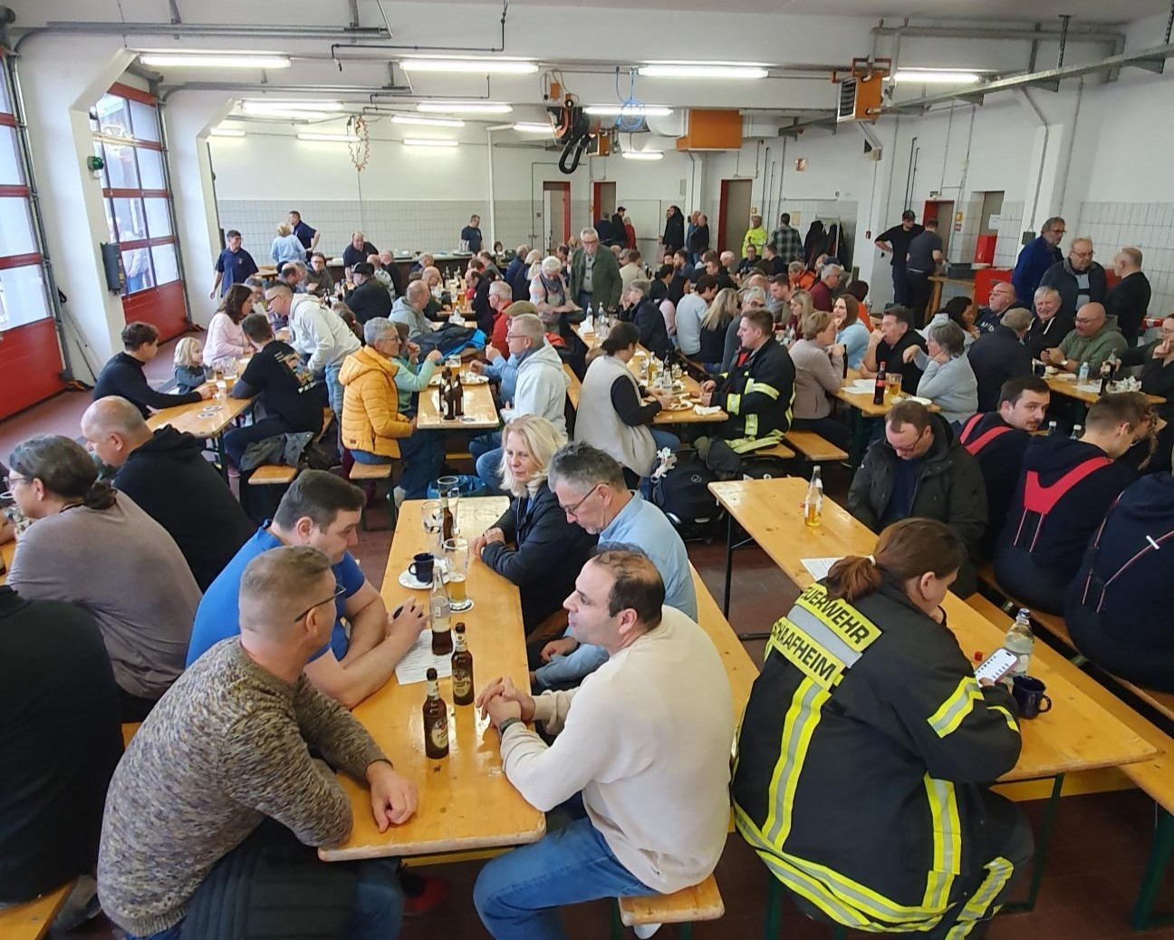 Pflaumheim. Am Samstag, den 15.11.2025 lud der Feuerwehrverein Pflaumheim in das Feuerwehrhaus der Freiwilligen Feuerwehr Großostheim zum traditionellen Lakefleischessen ein. In einem Teil der Fahrzeughalle wurden die Gäste, insbesondere mit der regionalen Spezialität Lakefleisch, von 11 Uhr bis in den frühen Abend bestens von den Pflaumheimer Feuerwehrkameradinnen und Feuerwehrkameraden bewirtet.
